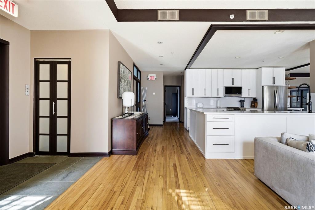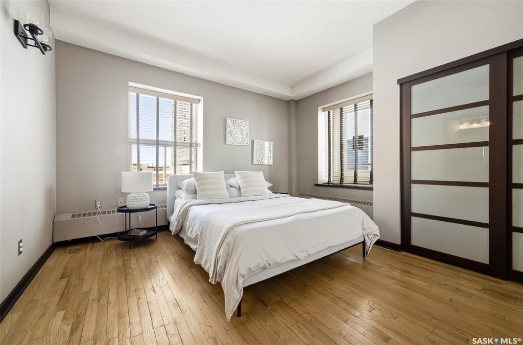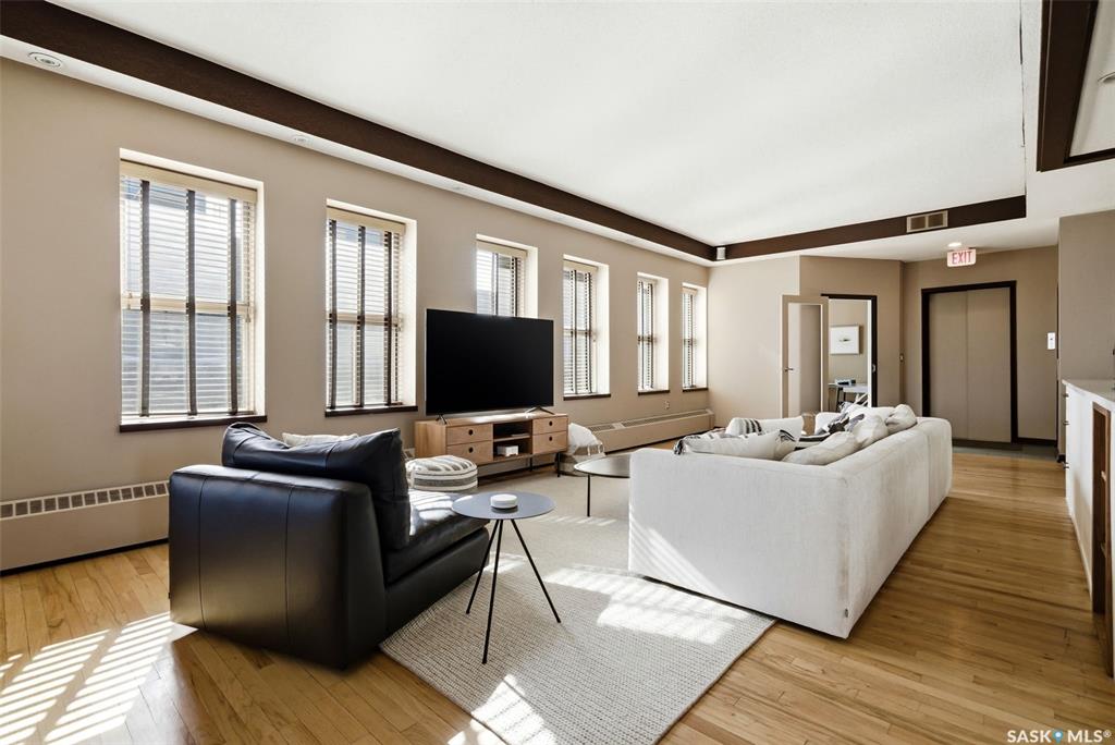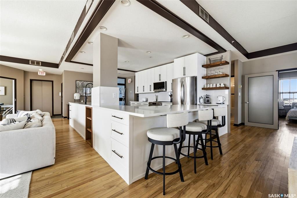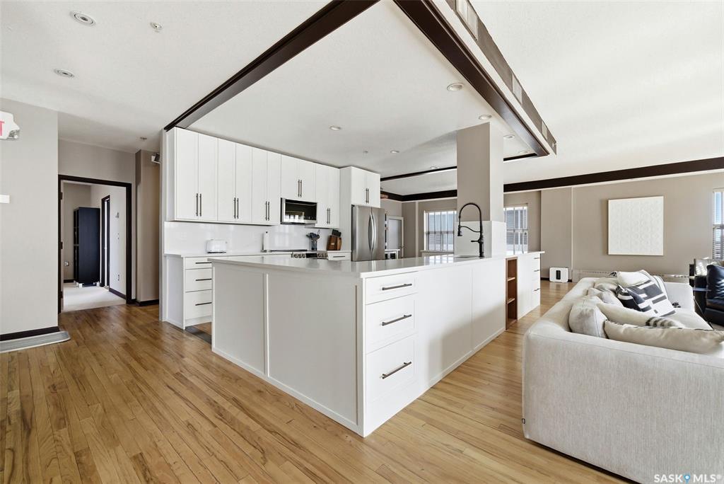 Penthouse Living in the Historic Western Trust Building! Welcome to the coveted fifth-floor penthouse offering over 1,900 square feet of refined downtown living. This exceptional home blends heritage architecture with thoughtful modern updates. Natural light pours through oversized windows, highlighting rich hardwood floors and soaring ceilings that enhance the open-concept design and create an airy, sophisticated atmosphere ideal for both everyday living and entertaining. The showpiece kitchen, completed i...