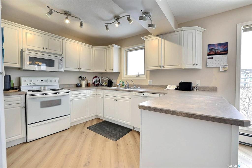 Gorgeous, rare find end, plus corner unit condo with fantastic views of greenspace! At 1350 sq ft the expansive, airy space greets you upon entrance. Wide open layout featuring massive living/great room with a wall of windows overlooking open fields. New flooring throughout living areas and generously sized dining area, large kitchen with abundance of contemporary white cabinets and counterspace. Huge primary bedroom with walk in closet and 3pc ensuite with mobility friendly step in oversized shower. 2...