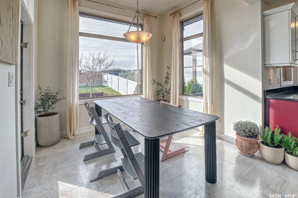 Spacious and well-designed, this beautiful former show home in Greens on Gardiner is loaded with desirable features throughout. On the main level, attractive hardwood flooring and gas fireplace in the living room is enhanced by an abundance of natural light. An island with breakfast bar, pantry, two toned cabinetry with tiled backsplash and stainless steel appliances are featured in the kitchen. The dining nook has 10’ ceilings. A convenient two piece bath and laundry room is well placed with access to the ...