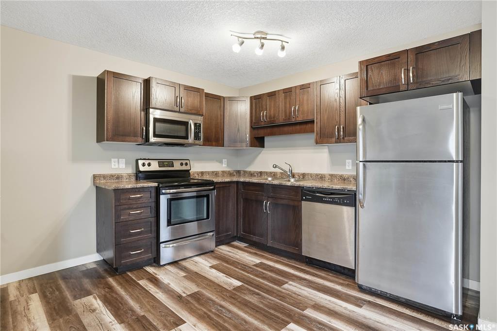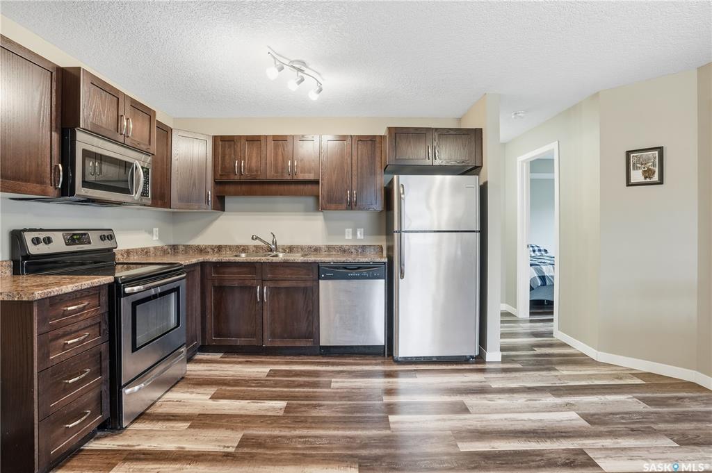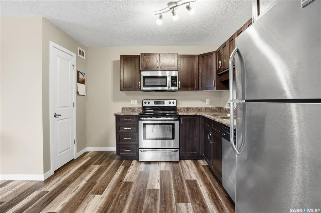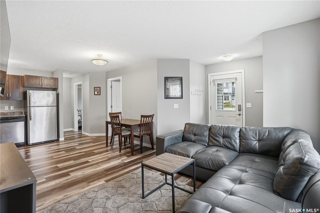 Exceptional condo in the heart of Harbour Landing is a great starter home or investment. Shows 10/10, this owner occupied 2 bedroom, 1 bathroom condo has been very well kept by its owner. Quiet development. Main floor unit. Open concept living room, breakfast nook area and kitchen with stained maple cabinetry, plenty of cupboard space and additional pantry storage. Both bedrooms are bright and spacious. Full bathroom. Laminate flooring throughout. Tankless water heater and in-floor heat throughout the condo...