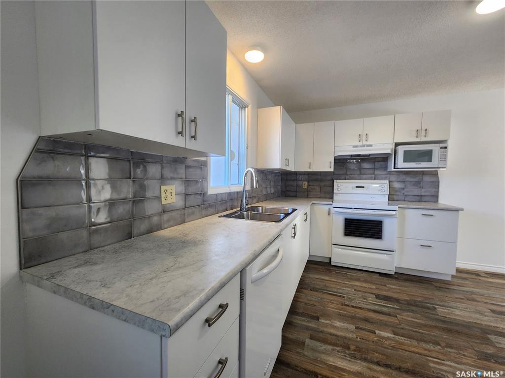 Beautifully updated 1,355 sq.ft. bungalow with a double attached garage centrally located in the town of Assiniboia. Situated on a double corner lot with a modern metal fence. This large home has great curb appeal with a large deck off the front of the house. Coming in the front door you are greeted by a good sized foyer. Leading into a huge living room with garden doors to your relaxing covered patio area! Coming back inside we find a beautifully renovated kitchen featuring new cabinets and a gorgeous back...