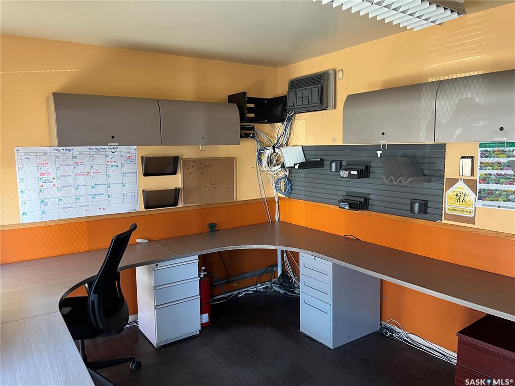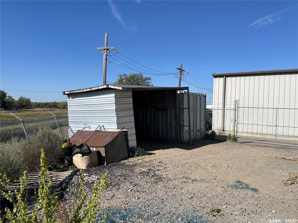 Ideal investment or personal use property., located behind Staples on Albert Street. 1600 sq. ft. of warehouse and office space. 100 sq. ft. of office, 1500 sq. ft. of warehouse. 14 foot ceiling on center, 1-10 x 10 overhead door. All office desks and cabinets included. Rear yard is fenced with covered shed. 2 steel containers not included in sale. Note: This property can be purchased with compound next door MLS #SK019860