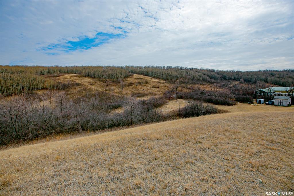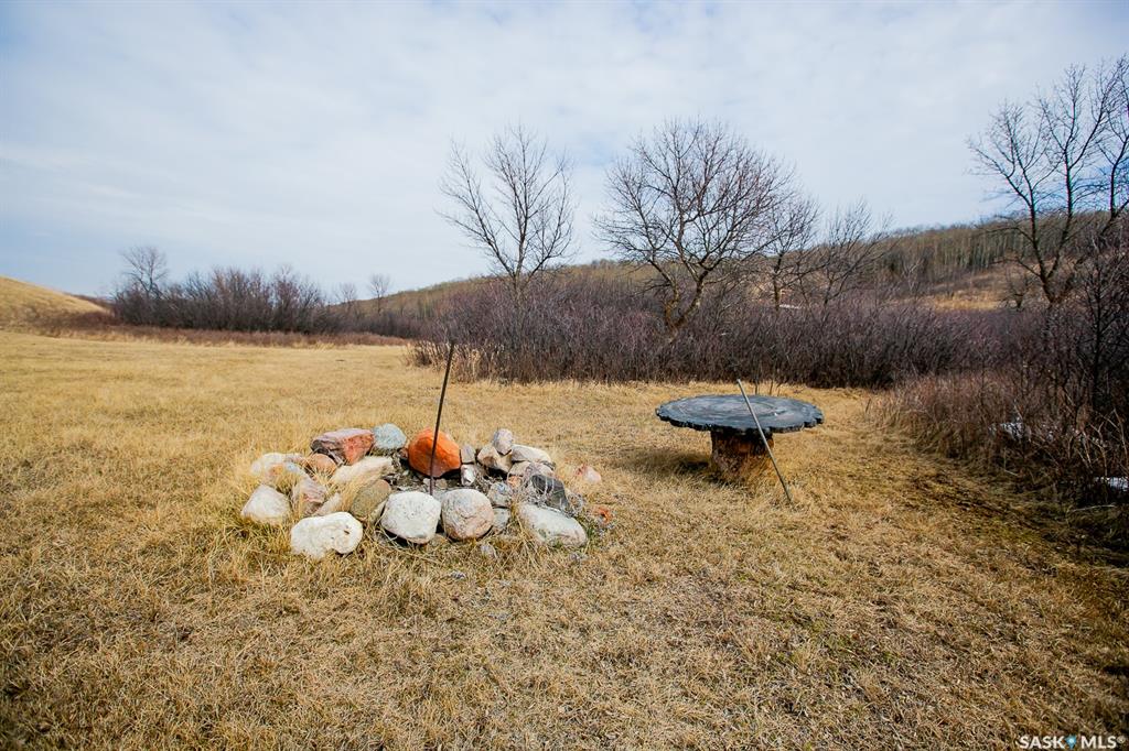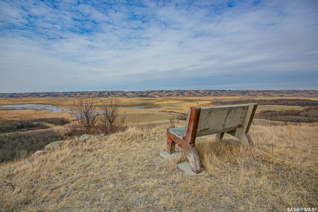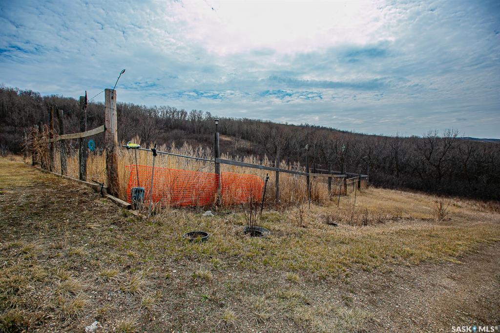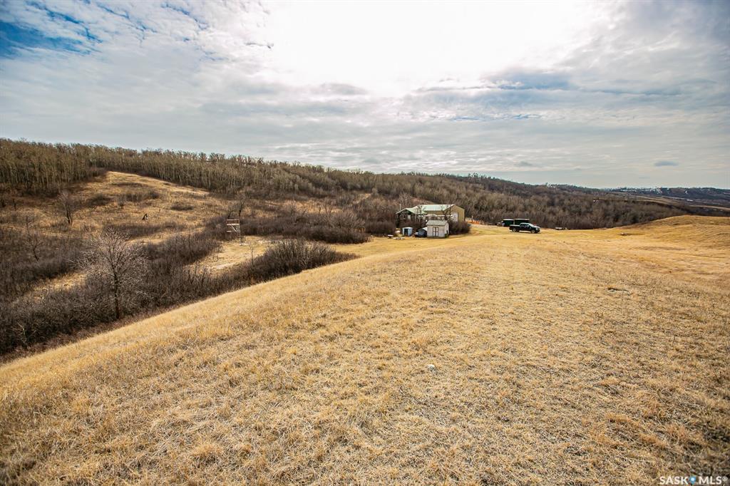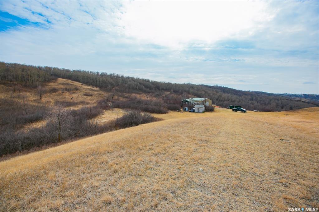 Unique property located approximately 33kms from North Regina. This opportunity includes 39'x39' quonset with concrete floor. 14'x10' door with 12' walls. 200 amp electrical service. Home is setup with wood stove and electric baseboard heaters. Main level includes functional kitchen, dining area with adjacent living-room. Four piece bathroom. Bedroom (is framed into a portion of the quonset) allows direct access into quonset. Yard site blends the sunset views into the valley plus the natural hillsid...