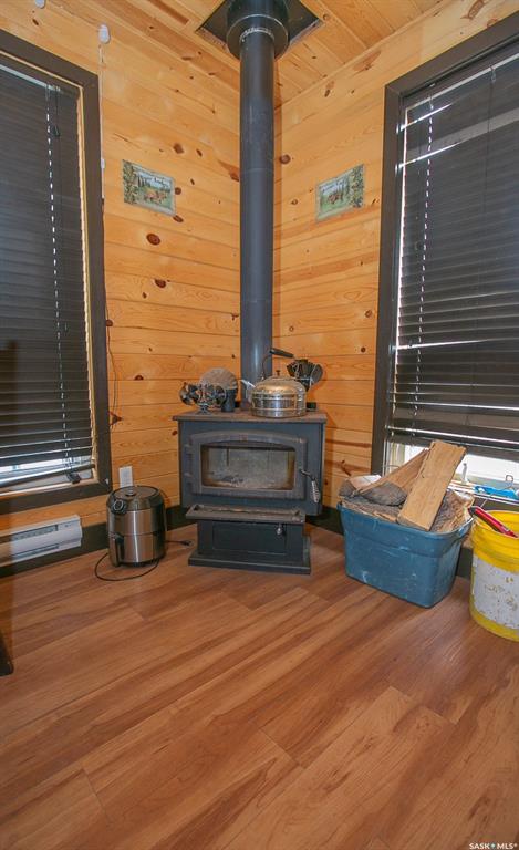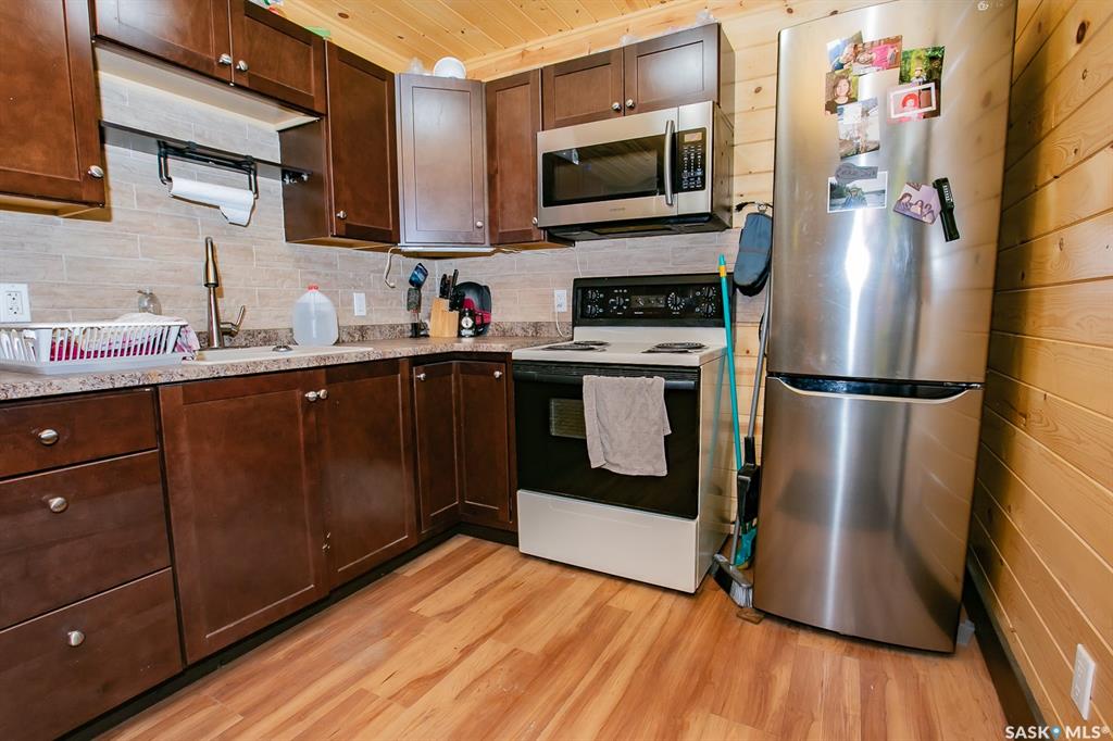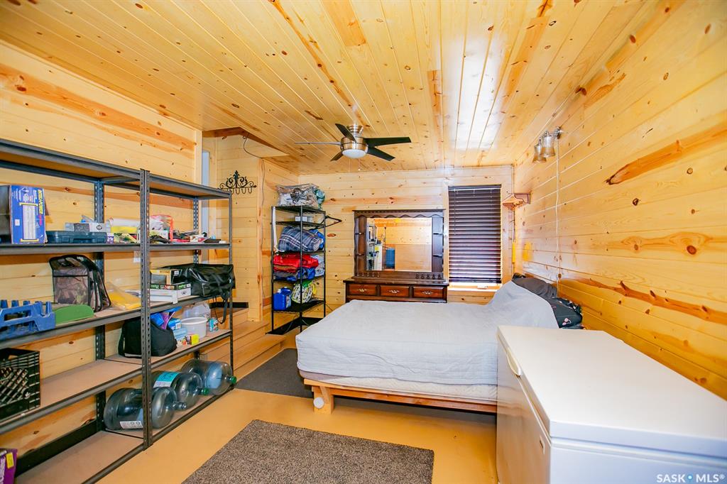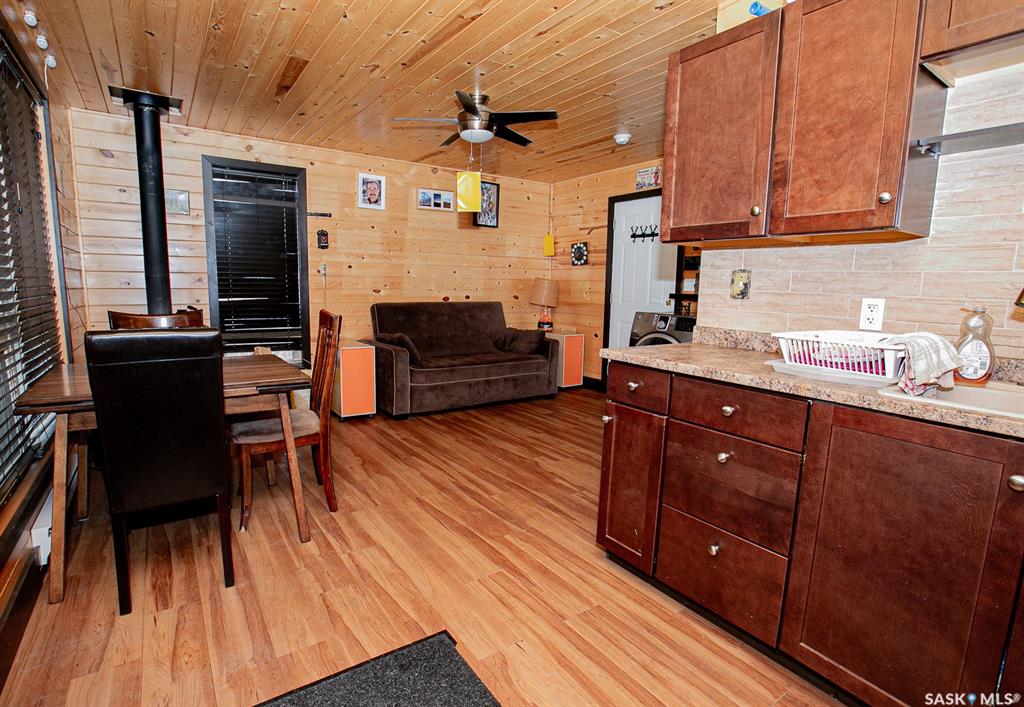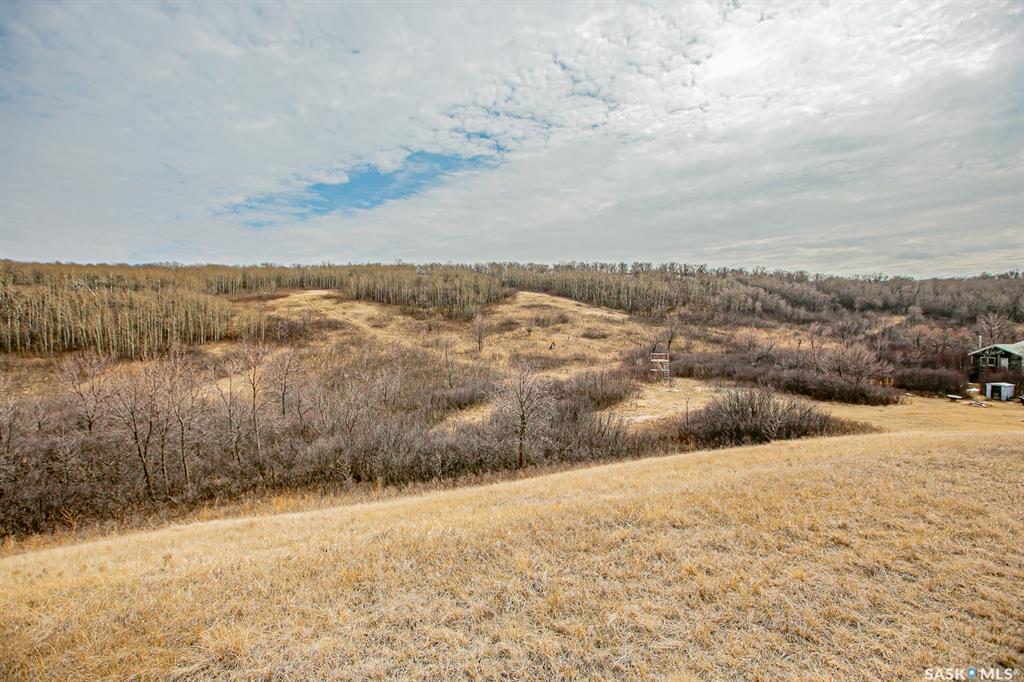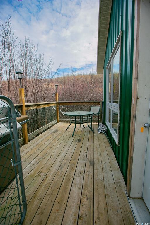 Unique property located approximately 33kms from North Regina. This opportunity includes 39'x39' quonset with concrete floor. 14'x10' door with 12' walls. 200 amp electrical service. Home is setup with wood stove and electric baseboard heaters. Main level includes functional kitchen, dining area with adjacent living-room. Four piece bathroom. Bedroom (is framed into a portion of the quonset) allows direct access into quonset. Yard site blends the sunset views into the valley plus the natural hillsid...